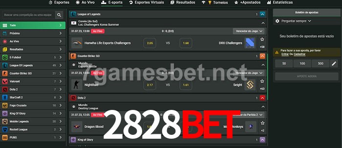 O 2828Bet oferece uma grande seleção de opções de apostas em e-sports com probabilidades competitivas
